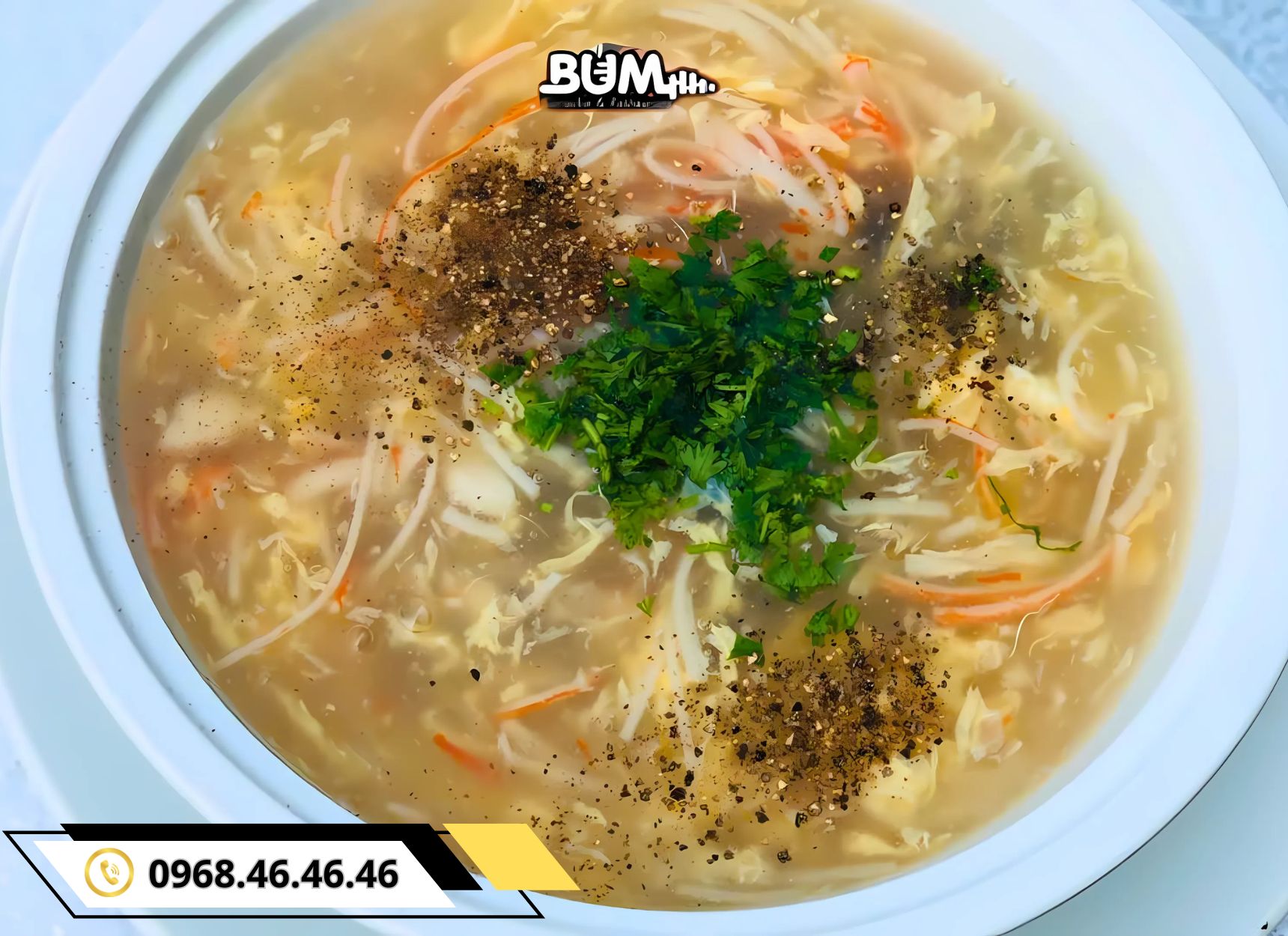 Một số gợi ý từ nhà hàng tiệc cưới Bum bao gồm: súp thịt cua nấm kim châm, súp gà thảo mộc và súp hải sản.