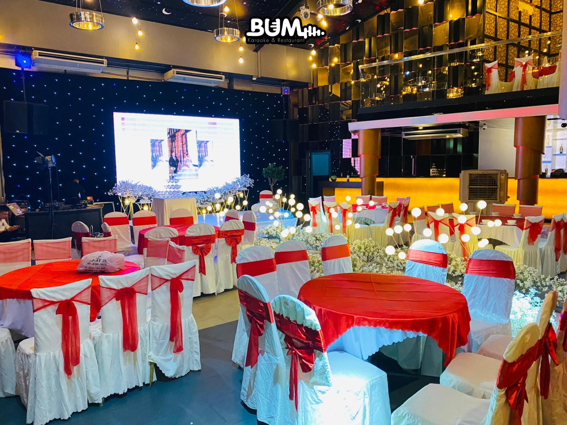 Tọa lạc ngay trung tâm phường Bến Tre, Nhà hàng nổi tiếng Bum đã trở thành địa điểm tổ chức tiệc cưới giá rẻ tại Vĩnh Long quen thuộc cho những cặp uyên ương muốn tổ chức hôn lễ trọn vẹn và sang trọng. Với sảnh cưới rộng rãi, hệ thống ánh sáng tinh tế, trần cao thoáng mát và nội thất hiện đại, Bum mang đến không gian ấm cúng nhưng vẫn lộng lẫy — phù hợp cho tiệc cưới từ vài trăm khách đến tiệc lớn.