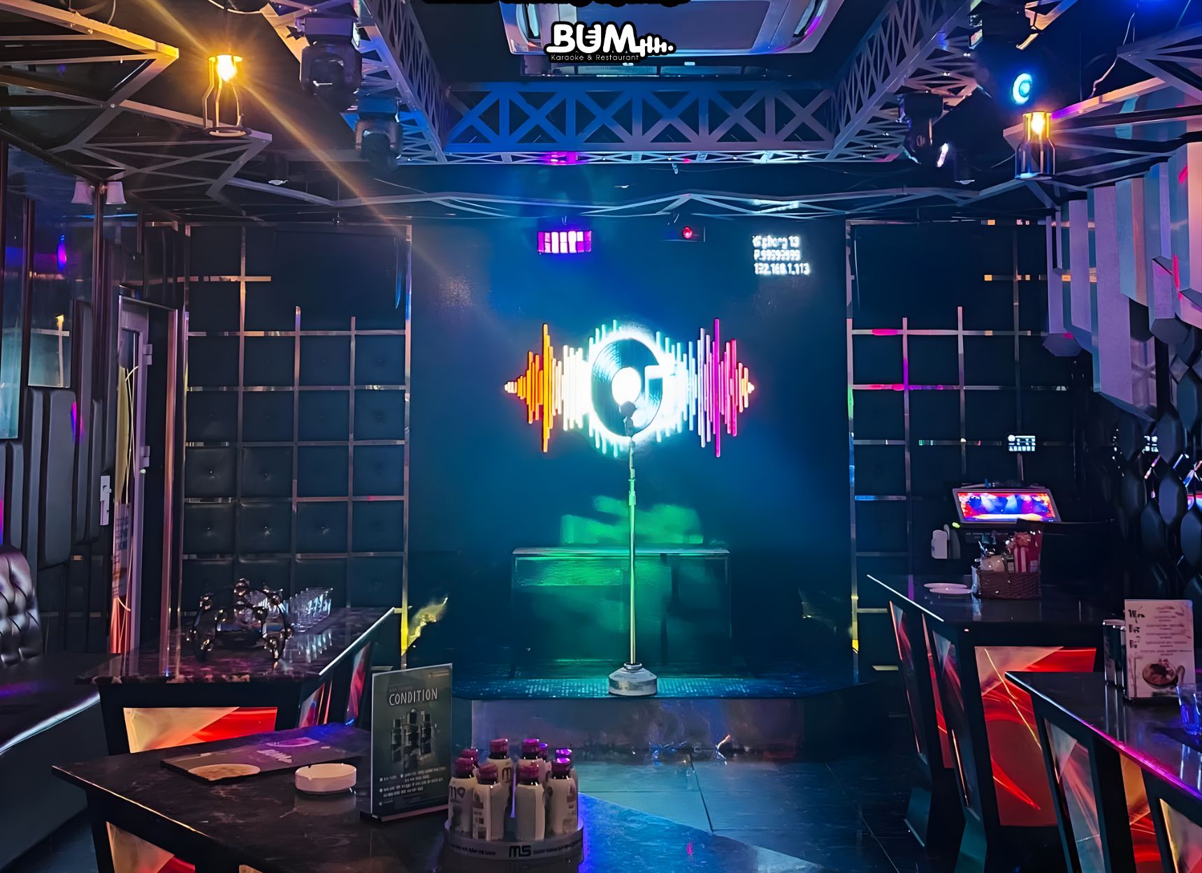 Chất lượng âm thanh – ánh sáng cũng là yếu tố không thể bỏ qua. Dàn loa mạnh, micro nhạy, âm thanh rõ ràng giúp người hát tự tin hơn, trong khi hệ thống ánh sáng hiện đại sẽ làm không khí buổi tiệc thêm phần sôi động.