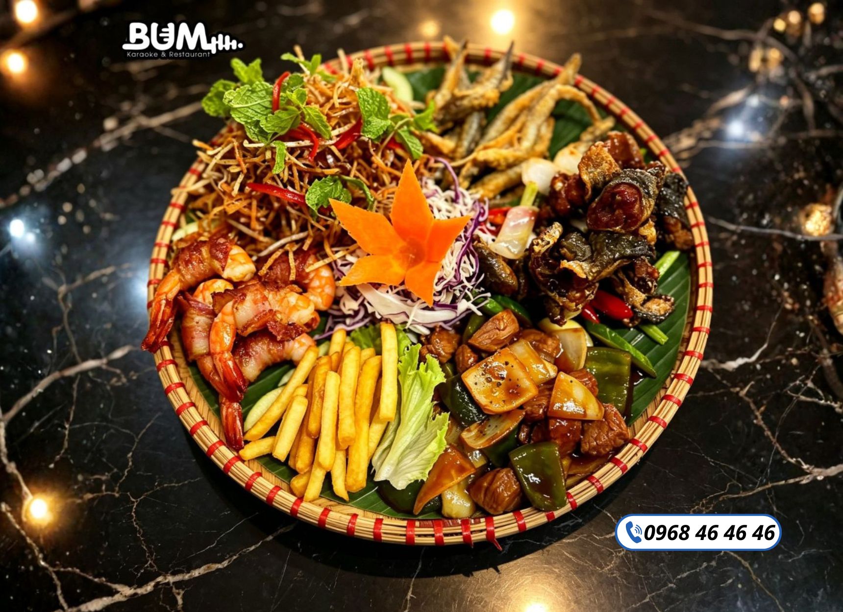 Một buổi ca hát sẽ trọn vẹn hơn khi đi kèm với món ăn quán karaoke phong phú. Bum Karaoke chú trọng đến thực đơn để khách hàng vừa ca hát vừa thưởng thức ẩm thực hấp dẫn.