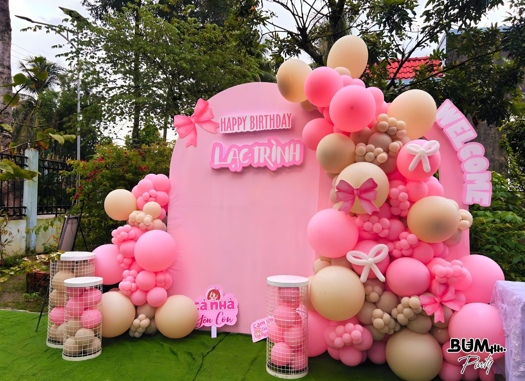 Một góc trang trí xinh xắn dành riêng cho bé là điểm nhấn không thể thiếu trong tiệc sinh nhật 1 tuổi. Bum hỗ trợ trang trí backdrop, bóng bay, bàn bánh và phụ kiện đáng yêu, giúp bé có không gian chụp hình kỷ niệm thật trọn vẹn, lưu giữ những khoảnh khắc đầu đời đầy yêu thương.
