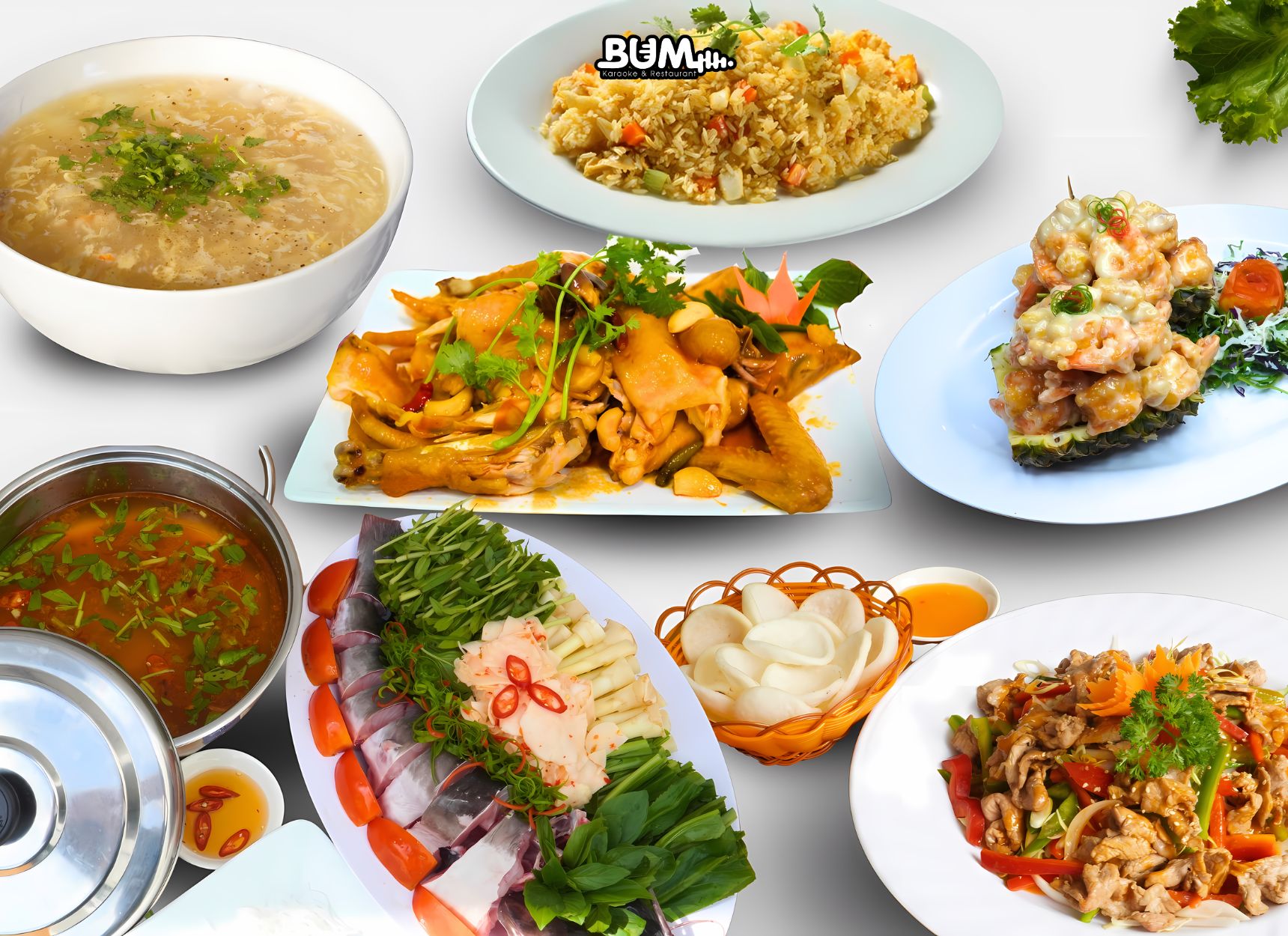 Không chỉ ngon miệng, dịch vụ nấu tiệc tại nhà hàng Bum với thực đơn tiệc cưới được sắp xếp khoa học, giúp khách mời thưởng thức trọn vẹn từng món ăn trong không khí vui tươi, ấm cúng của ngày hỷ.