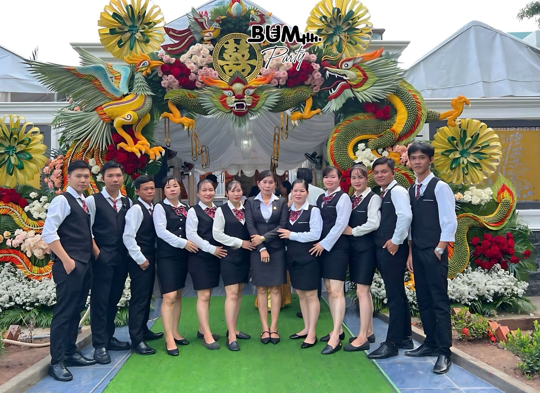 Đội ngũ nhân viên nhà hàng tổ chức tiệc cưới tại Vĩnh Long - BUM luôn sẵn sàng tư vấn chi tiết về menu, chi phí và giải pháp tổ chức tiệc cưới phù hợp nhất cho bạn.