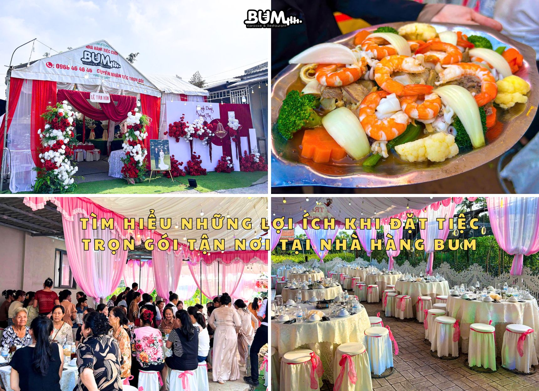 Nắm bắt nhu cầu đó, Nhà hàng BUM đã và đang triển khai tổ chức tiệc trọn gói tận nơi chuyên nghiệp, mang đến giải pháp tiện lợi, tiết kiệm và hiệu quả cho mọi buổi tiệc. Hãy cùng tìm hiểu những lợi ích nổi bật khi lựa chọn dịch vụ này tại Nhà hàng BUM.