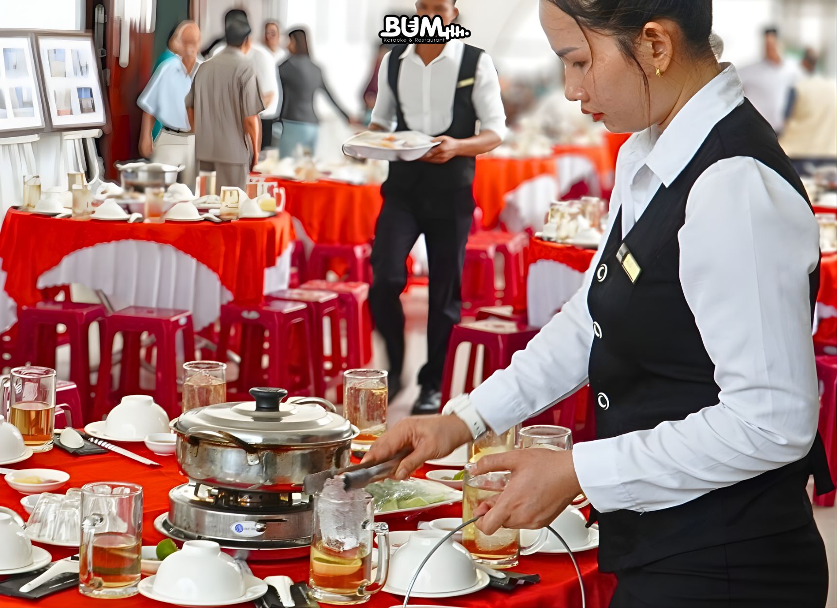 BUM sở hữu đội ngũ nhân viên được đào tạo bài bản, giàu kinh nghiệm và luôn làm việc với tinh thần trách nhiệm cao. Mỗi buổi tiệc đều được chuẩn bị kỹ lưỡng, đảm bảo diễn ra suôn sẻ, đúng kế hoạch và làm hài lòng khách hàng.