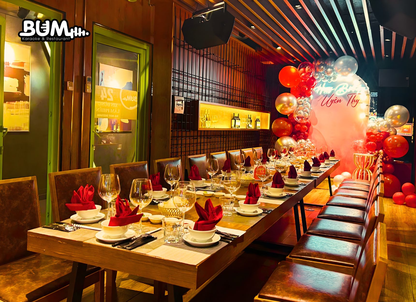 Với những ai yêu thích sự riêng tư, tinh tế và đẳng cấp, dịch vụ thuê tổ chức tiệc sinh nhật tại nhà hàng có phòng riêng – phòng rượu tại nhà hàng karaoke Bum là lựa chọn hoàn hảo. Không gian được thiết kế kín đáo, sang trọng, phù hợp cho các buổi sinh nhật thân mật, tiếp khách hoặc tiệc sinh nhật dành cho người lớn, doanh nhân.