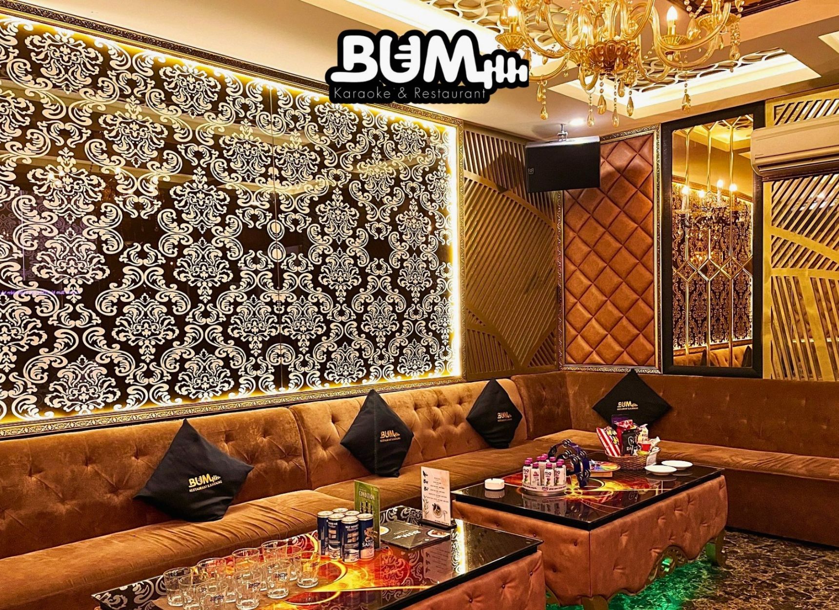 Một trong những yếu tố đầu tiên thu hút khách hàng đến với dịch vụ karaoke tại nhà hàng Bum chính là thiết kế nội thất của các phòng hát. Mỗi phòng karaoke đều được trang trí tinh tế và hiện đại, mang đến cảm giác sang trọng nhưng vẫn ấm cúng. Từ ánh sáng dịu nhẹ cho đến màu sắc hài hòa, mọi chi tiết đều được chăm chút kỹ lưỡng nhằm tạo ra không gian thoải mái nhất cho người hát.