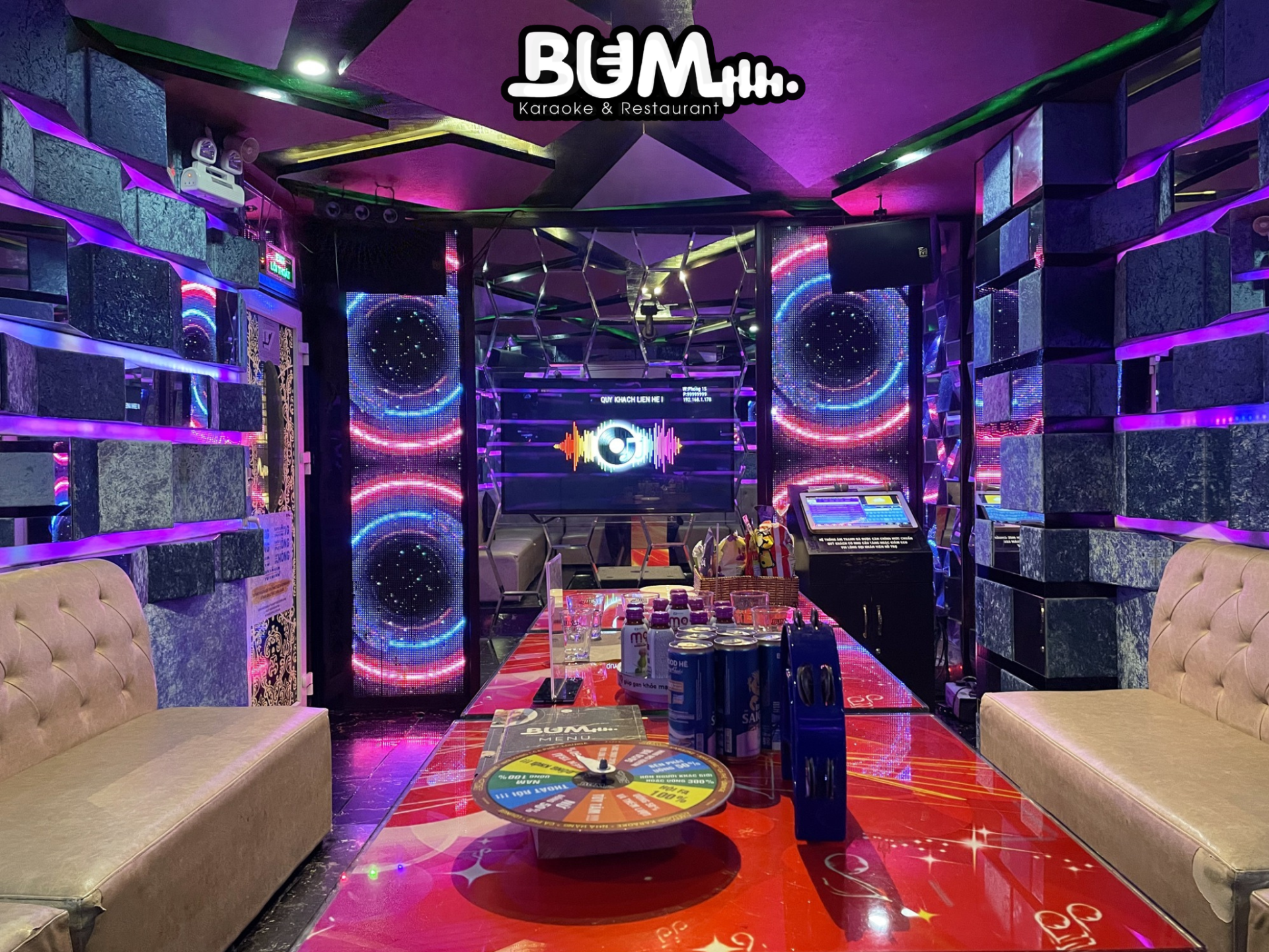 Hãy đến với quán karaoke Bum để trải nghiệm những giờ phút ca hát sôi động cùng 10 lợi ích tuyệt vời mà karaoke Bum mang lại! Với hệ thống âm thanh hiện đại, phòng hát sang trọng cùng đội ngũ nhân viên chuyên nghiệp, quán karaoke Bum ở Bến Tre chắc chắn sẽ mang đến cho bạn những khoảnh khắc thư giãn tuyệt vời nhất! Liên hệ hotline 0968.46.46.46 để được tư vấn và đặt ngay phòng karaoke cho bạn bè và gia đình có cả phòng karaoke gia đình 10 người hoặc phòng rộng dành cho nhiều người hơn ngay nhé!