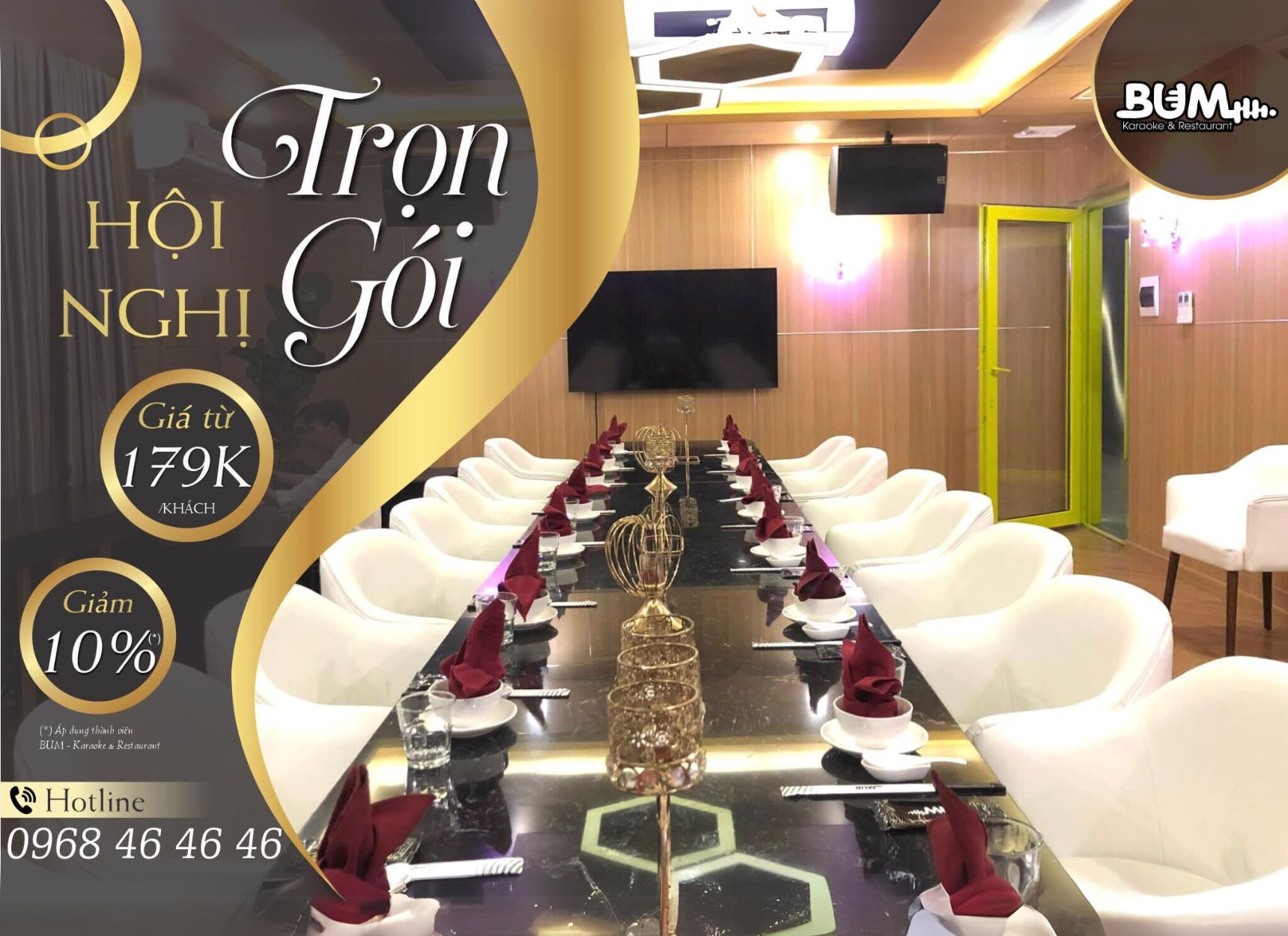 Với dịch vụ cho thuê phòng hội nghị lớn giá rẻ, nhà hàng karaoke BUM cam kết mang đến quý khách trải nghiệm chất lượng và tuyệt vời, xứng đáng với số tiền mình bỏ ra. Hiện tại, giá thuê phòng hội nghị lớn chỉ từ 179k/ khách, quý khách có thể sử dụng đa dạng các tiện ích giúp buổi họp hiệu quả, chỉn chu và tạo nên dấu ấn đặc biệt.