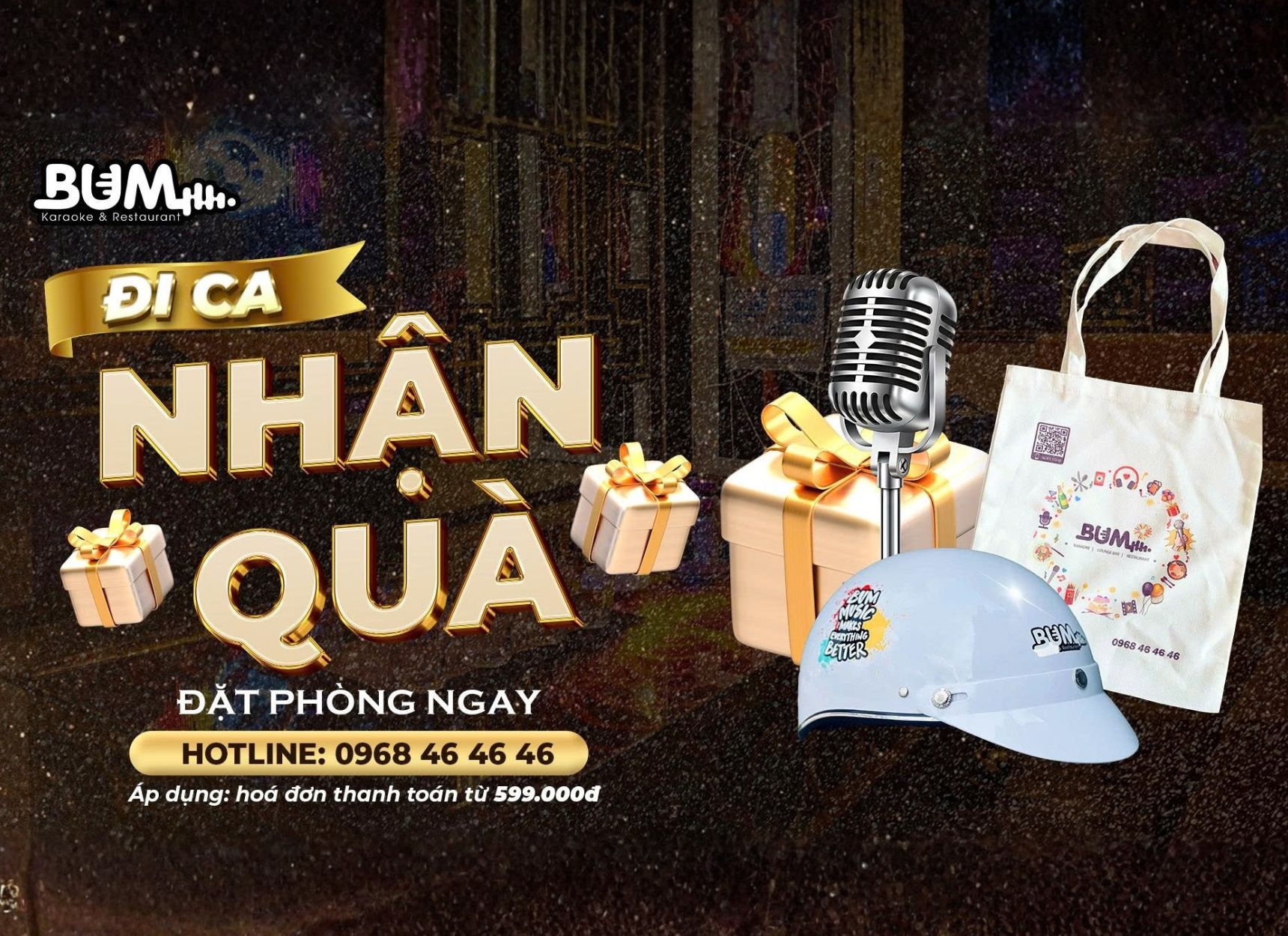 Không chỉ được miễn phí giờ hát, khách hàng còn nhận thêm quà tặng khuyến mãi như túi BUM, nón bảo hiểm, giúp trải nghiệm thêm phần thú vị.