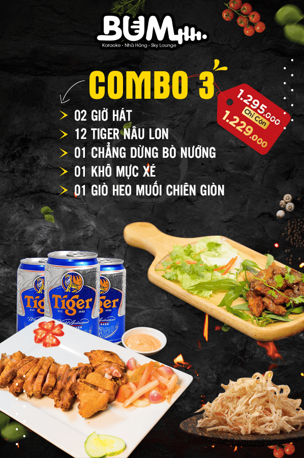 Combo 03 giá chỉ 1.229.000 đồng/10 người (bật mí nhỏ, tính ra mỗi người chỉ 110k thôi nha). COMBO 3 (dành cho 06-10 người), với: