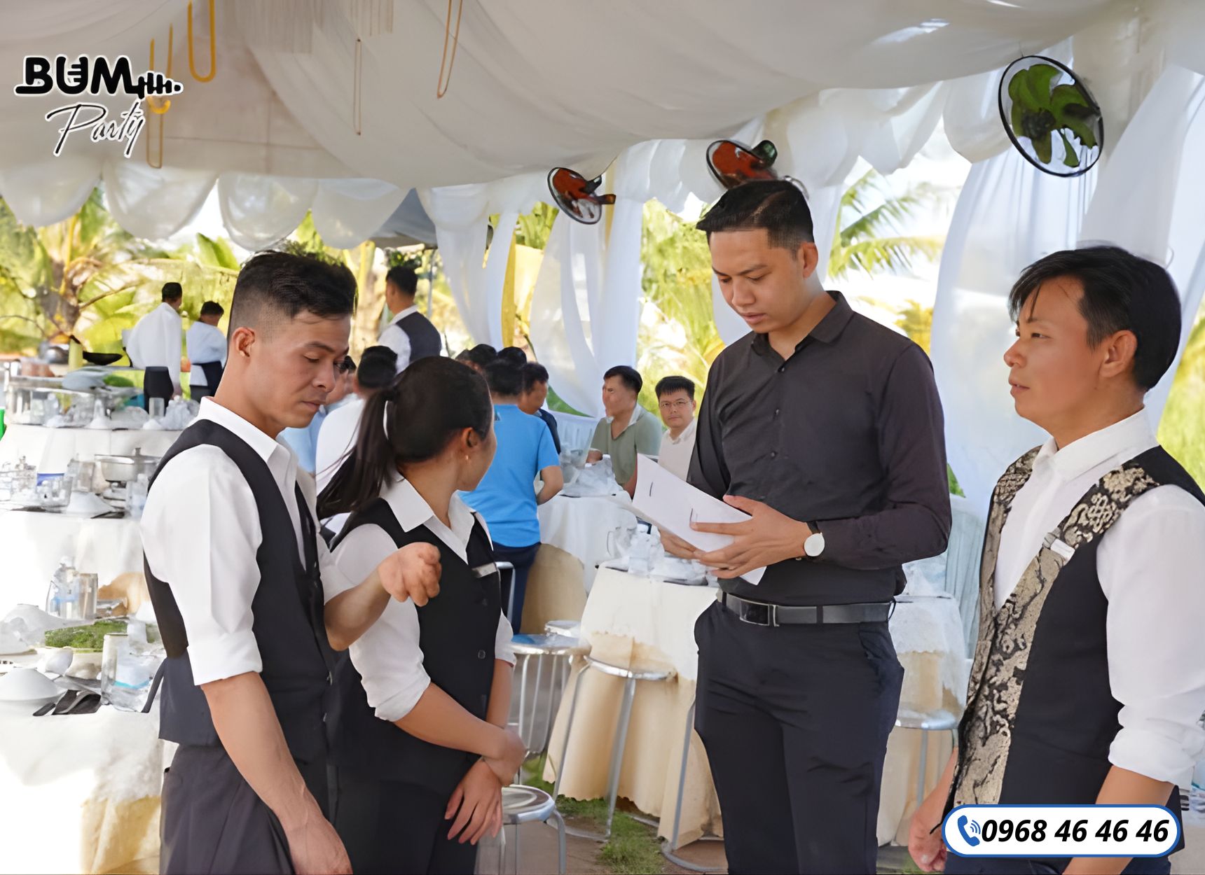 Đội ngũ nhân viên luôn sẵn sàng hỗ trợ khách hàng trong suốt quá trình tổ chức tiệc. Sự tận tâm và chuyên nghiệp chính là yếu tố giúp Bum ghi điểm trong lòng khách hàng.